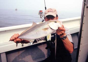 この日は2〜3キロ前後のヒラマサが朝からポツポツと上がった。
