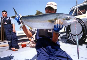 潮はあまり動いてないようだったが、しばらくして船中アタリが出始め、鈴木氏がヒラマサをキャッチ。植村氏も初ヒラマサをゲットした。