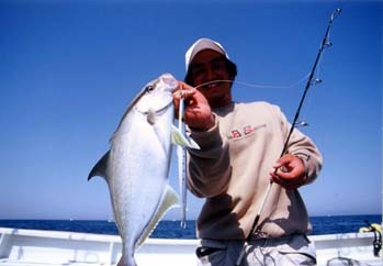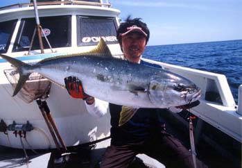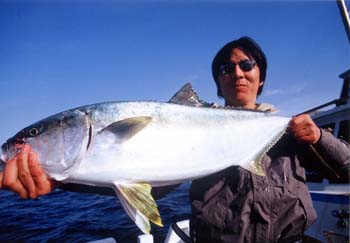某有名メーカーのテスターを勤める鈴木氏はいろいろなジグを使い、巧みなロッドワークと釣りのセンスで着々とヒラマサを釣り上げていった。良いロッドはこうした実釣と経験から生み出しているんだなと思った。