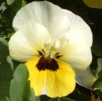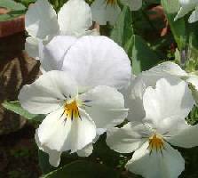 | 一番右の白い花はかなり大きい。小さいパンジーかと思うほど。 一番左が普通のビオラ。 |