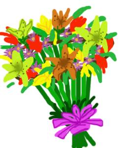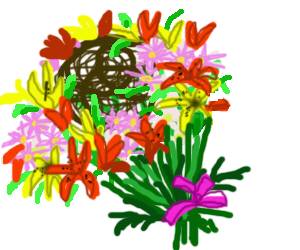 オリンピックが終わりました。花好きの皆さんは、オリンピックで選手に渡された花束が二種類あった事に気がつかれたと思います。イラスト左の腰高でかずらの輪(リース)に沿って花を配し、中が空洞の物。イラスト右の、背が低く真ん中にかずらの玉がある花束です。