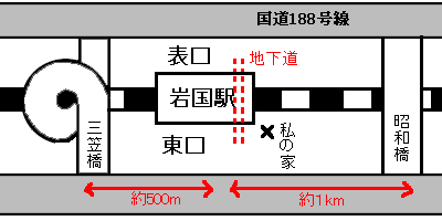 実はこの親戚、ミカンをくれるのはいいけど、くれ方の中途ハンパさが非常に迷惑なのだ。前にもミカンを15キロ位くれた事があった。受け渡しは岩国駅表口。(図を見てほしい。)表口というのが曲者。車で来るのなら東口でくれるか、家まで持って来てくれるのが親切というものだ。
