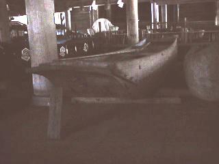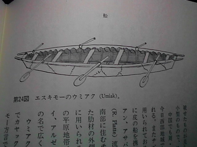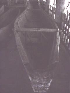 別々に刳った二本のオモキと一本のチョウ(底部)をついで成っている。樅材でカナギ漁に使用するために丈夫に造られている。漕法はソリコと同様。 |