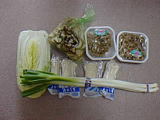 御野菜は、といいますと。大ねぎ一束、白菜1/2カブ、ブナ
