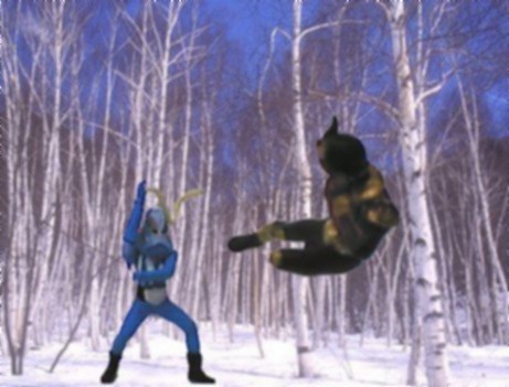 会社の若人に言わせると「クラゲダールが熊に真空投げをお見舞いしている」だそうです(^^;)