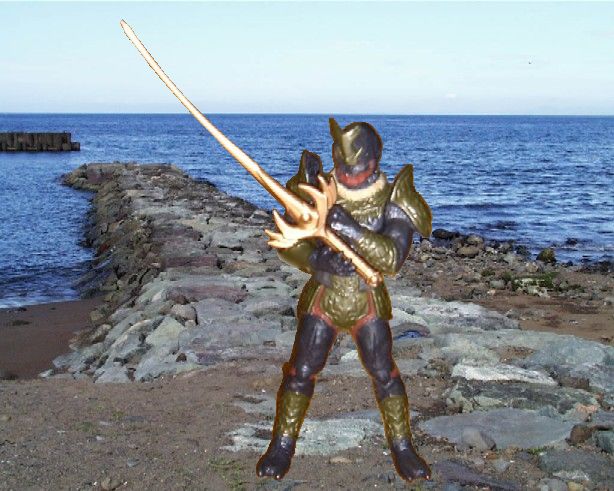 ガシャポンのガドル閣下に、食玩アギト(フレイムフォーム)のセイバーを持たせてみました。