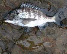本日の釣果(2001.1.28) チヌ 35cm 1枚 カレイ 22cm 1枚 (カレイを裏返すのを忘れ ました) |