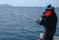 その後、風とうねりが大きくなり、筏も風に押されたようで、ポイントが外れてしまったのか全く魚の釣れそうな感じが無くなってしまいました。