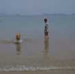 足下の砂の上には小さなハゼが沢山。そしてヤドカリも。娘も大喜びです。